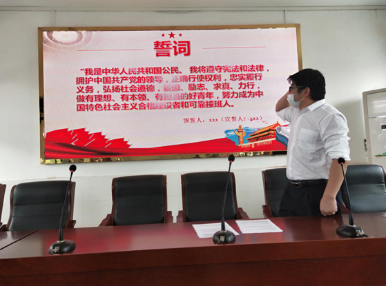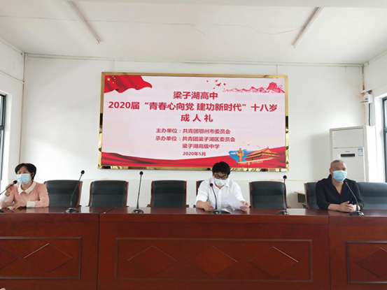 (本网讯)5月22日上午,梁子湖高中在四楼会议室,为高三学子举行了主题为“青春心向党,建功新时代”的成年礼活动。政教处副校长鲁鹏波、团支部书记高玲参加了此次活动。