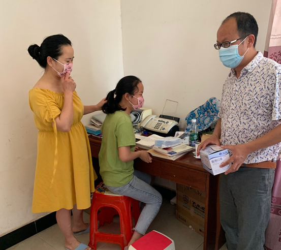 志愿者老师给留守儿童送来了口罩等防疫物资、学习用品、课外读物。了解学生的居家学习情况,了解学生在疫情期间的心理状况,并对留守儿童进行心理辅导。在交谈中,志愿者们了解到一个感人的故事: