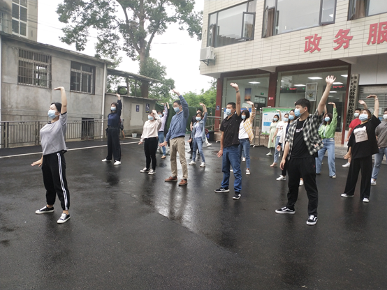 (本网讯)两手托天理三焦、左右开弓似射雕……一个个动作舒缓开来,调理脾胃臂单举、五劳七伤往后瞧……一招招展现健康文明风尚。5月21日,就着清晨的露雨,梁子湖区行政审批局组织全体窗口工作人员开展了一次别开生面的“八段锦”早操活动。