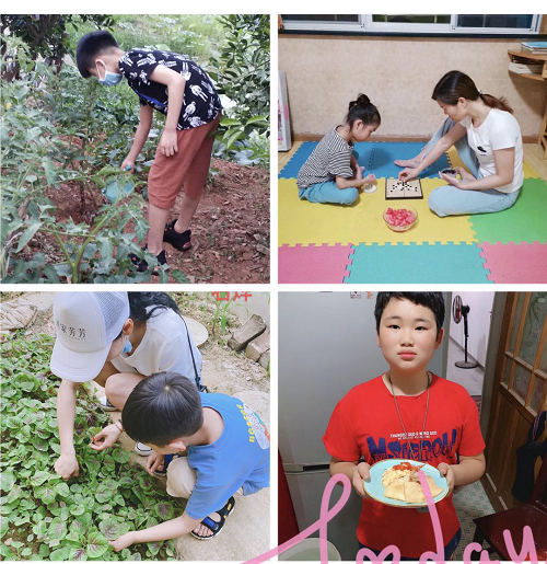 还组织开展了一场亲子活动,一部分学生在家与父母共同做一道家常菜,一部分学生选择了田间劳动, 还有一部分学生在家陪父母下棋,感恩之心溢满整个亲子活动。朝夕相处让大家有了更多的时间感受孩子们的成长、体会亲人间的关怀。