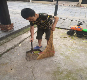 瞧我们的队员,正在清扫自家院落和周边的垃圾。