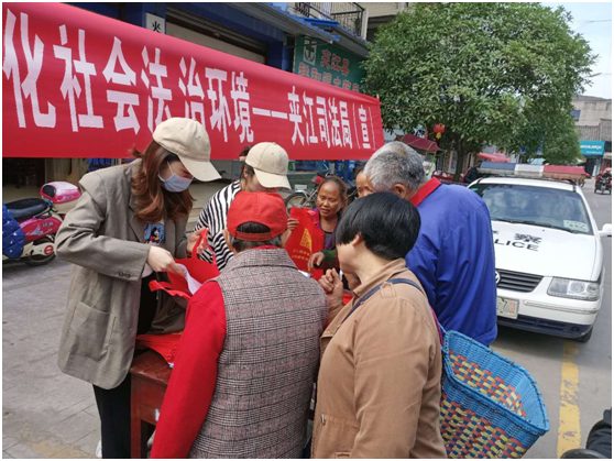 我局采用党建引领的模式,将党的政治优势、组织优势、制度优势、工作优势转化为基层社会治理的实际成效,围绕“四个承诺”和基层社会治理工作,以法治建设加强和创新基层社会治理。结合场镇赶场日的时间点,由党员宣传员用摆摊发放宣传资料和宣传车宣传的方式进行专项法治宣传,同时对街边商户进行面对面送法上门方式开展宣传,累计进入场镇、街道20余次,发放宣传资料3万余份,接受咨询1000余人次。在党建引领框架下,理顺基层社会治理体系中法治建设机制,通过通俗易懂、贴近生活的法治宣传模式让群众主动学法用法,培养正确的法治意识,基层社会治理中,党建引领的法治,让群众产生更多的获得感,提高群众的满意度,创造党的领导与基层自治的叠加效应,为新时代法治社会建设添砖加瓦。