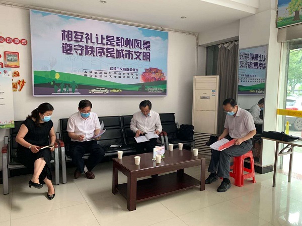 2020年6月3日,鄂州市人大常委会党组副书记、副主任周秀华带队调研火车站社区创文、疫情防控等工作。火车站社区联点结对单位市编办主任龚慎、西山街道党工委副书记王德润陪同调研。