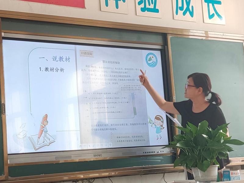 老师们各个精心准备,细致研读教材,紧扣单元人文主题和语文素养,结合学情设定切合学生实际的教学目标和教学重难点,精心设计教学过程。大家从说教材,说学情,说教学过程,说板书等方面,紧扣课程标准,展示了各自对新教材智慧化、创新化的运用能力。