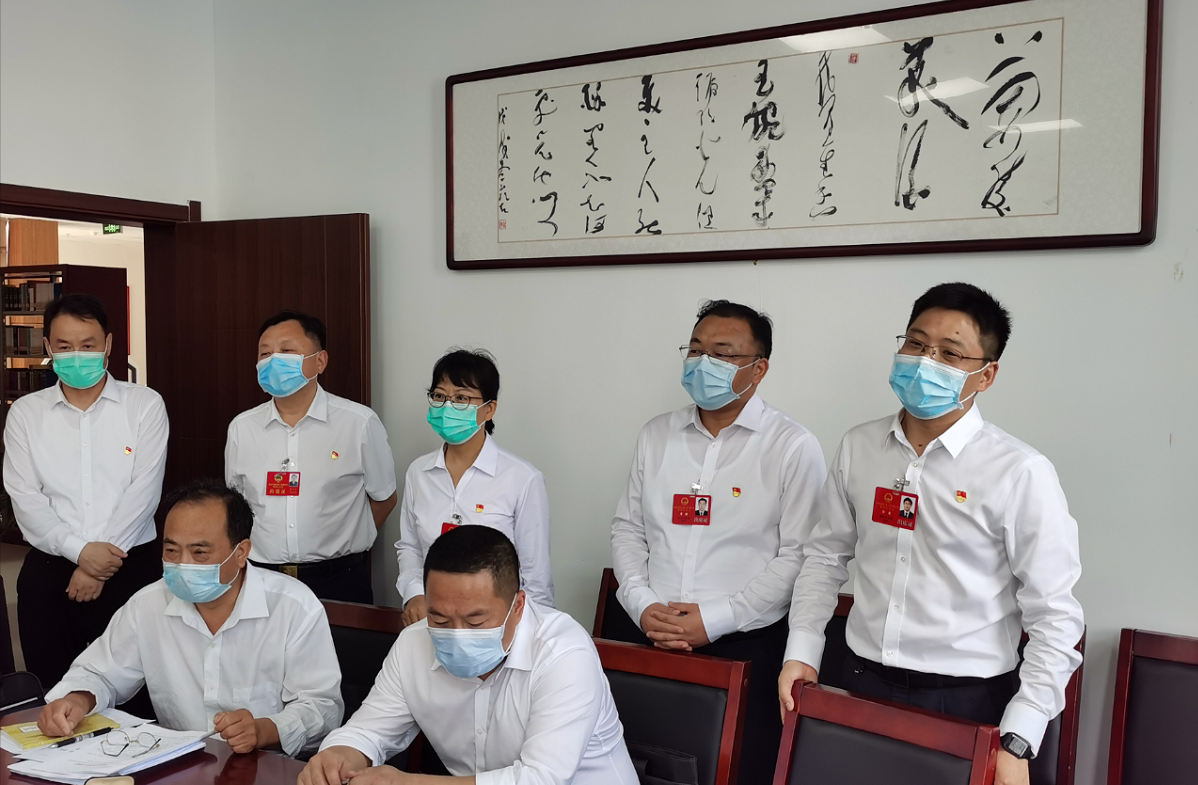 区委书记彭波在各代表团看望代表时说:中午和“四大家”的同志们来看望一下大家,主要是现在基于疫情防控期间,各项工作任务繁重,今年的“两会”不同以往,工作任务安排得比较紧,中午大家也没有时间休息,体现出了代表们高度的政治责任感和使命感,展现出新时代人大代表的风采。