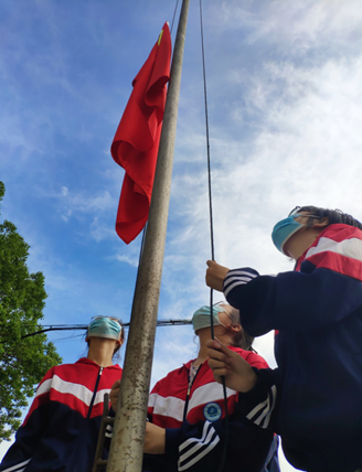 旗帜引领方向,行动汇聚力量。简短有力的升旗仪式激动人心,催人奋进,激励着同学们在来之不易的复学时光里胸怀祖国,倍加努力,不负青春!