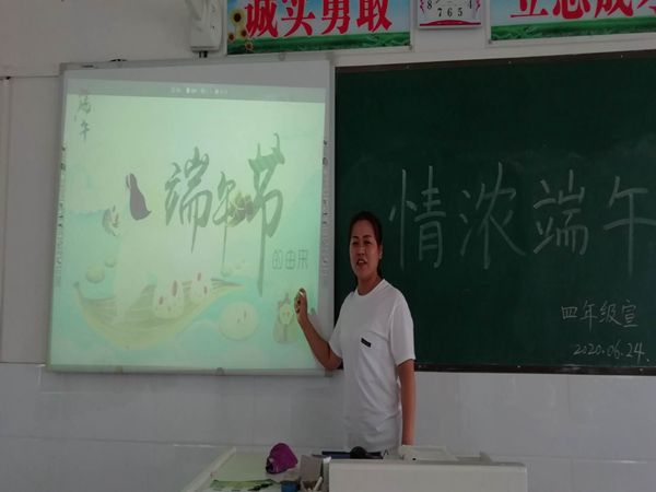 各班精心召开了端午节主题班会。主题班会上,师生一起追溯了端午节的由来,讲述了屈原的故事,让学生明白端午节不只是粽子节、龙舟节,更是民族节、爱国节。老师们还向学生介绍了端午悬挂艾草、佩香囊、赛龙舟、吃咸蛋、吃粽子等各地不尽相同的民风习俗。
