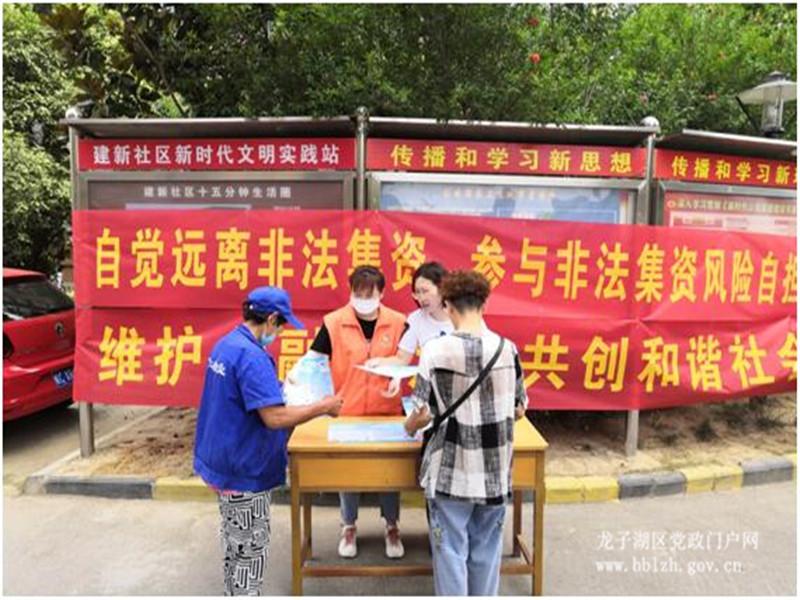 通过悬挂宣传横幅、发放宣传单和宣传品、播放宣传片、现场讲座等方式,向居民介绍非法集资、套路贷的特征和危害后果,向大家宣传《龙子湖区非法集资举报奖励实施细则》,引导居民面对非法集资做到能识别、不参与、敢揭发,勇于举报金融领域涉黑涉恶线索。