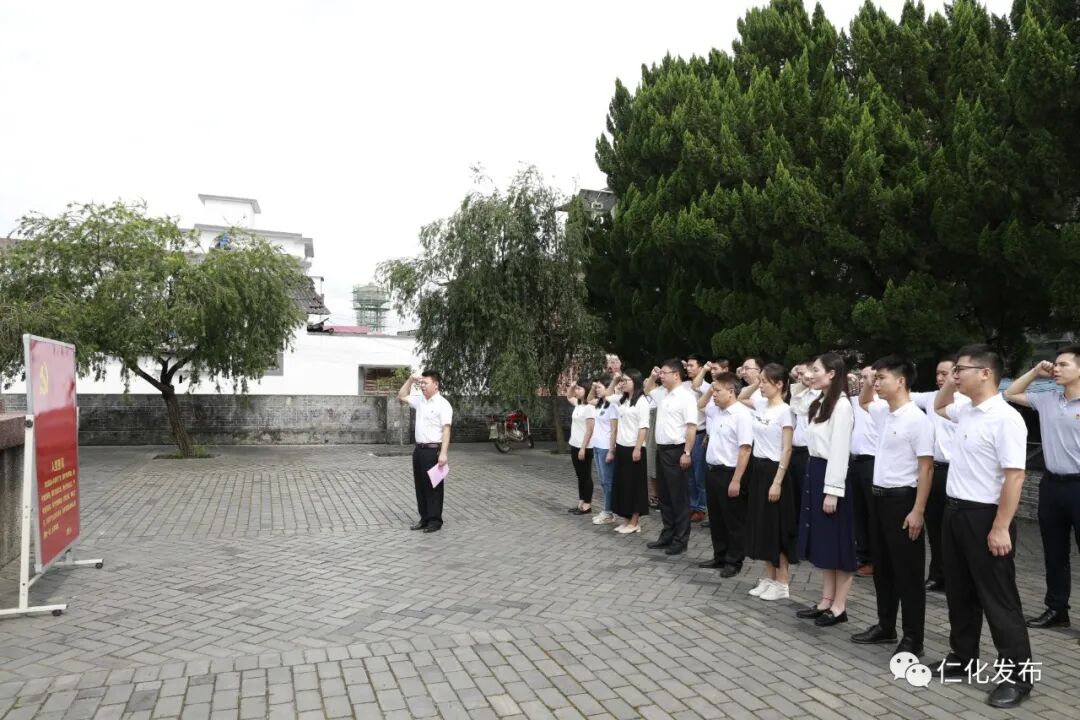 在石塘镇大革命烈士纪念碑前,全体党员面向纪念碑,重温入党誓词,缅怀革命先烈,在接受革命传统教育中感受不变的初心和使命。
