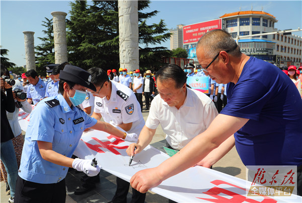 赵昌军、杨涛向现场群众发放了宣传资料袋,与禁毒志愿者、司乘人员、物流寄递业、公安民警代表共同参加了宣誓和万人签名活动;市、区禁毒委各成员单位工作人员现场向群众发放了各类禁毒宣传资料,耐心解答了有关问题;文艺工作者表演了文艺节目。