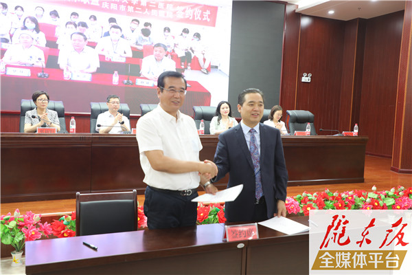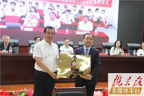 王胜说,双方成功签约,为我市开辟了一条技术共享、学科建设、人才培养的绿色通道,对于提高我市肠胃疾病医疗救治水平,推进“健康庆阳”建设具有里程碑式的重要意义。希望市第二人民医院全面加强与兰州大学第二医院的技术合作,在大力开展线上线下多点、多位合作,全面加快学科建设的同时,充分分享技术资源,全面深化上下协同、区域共建,推动分级诊疗,促进全市消化内科诊疗服务能力和水平。全市医疗卫生系统要高度重视高发类疾病等学科建设,将专业救治能力提升与医院学科发展规划有机结合起来,在学科建设、人才引进、技术培训及设备配置上重点支持。希望兰州大学第二医院各位专家教授继续关注老区医疗卫生事业,加强指导和技术带教,扶持薄弱学科建设,帮助培养专业人才,助推庆阳医疗卫生事业更快更好发展。