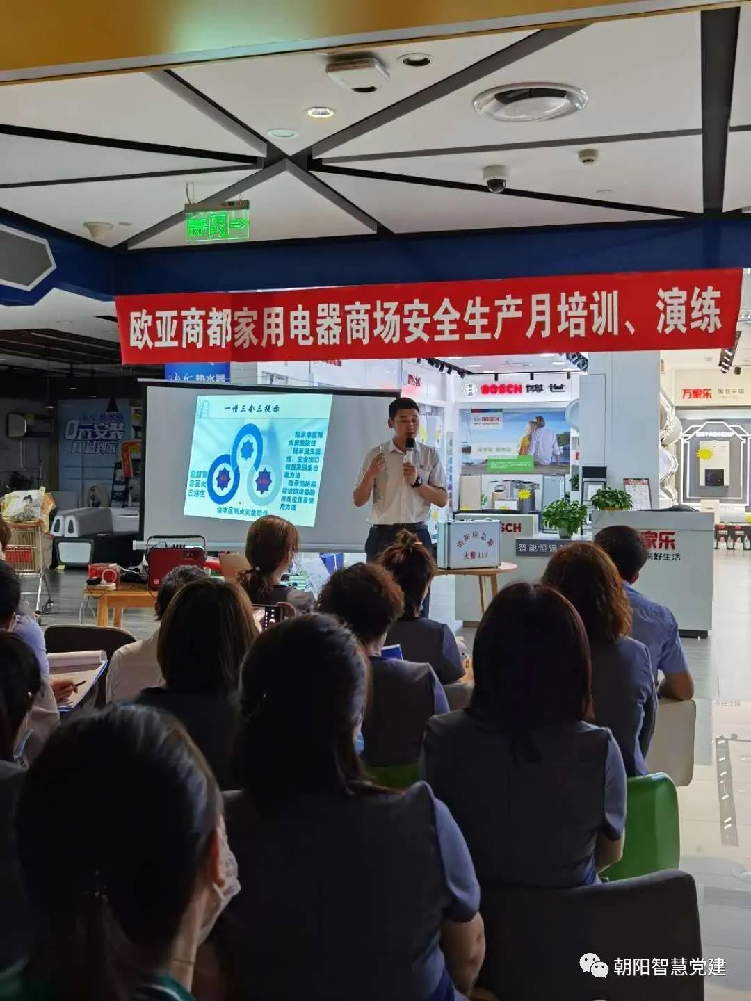 6月24日,红旗街道联合欧亚商都开展了2020年安全生产月专题培训和演练,会上,欧亚商都安全生产部经理为全体员工进行了题为《消除事故隐患 筑牢安全防线》的消防安全培训。培训通过图文并茂的讲解和案例分析,使员工了解高层建筑的消防安全特点、常见火灾事故的发生原因,认识了身边常见的消防设施、设备,掌握了发生火灾时的应急处理方法。培训结束后,红旗街道办事处副主任何绍林做了总结讲话,他强调,企业上下必须牢固树立安全发展理念,绷紧消防安全弦,严格落实消防安全规章制度和安全责任制,主动开展消防宣传教育,认真落实安全稳定各项工作措施,为红旗商圈企业的健康发展提供有力保障。