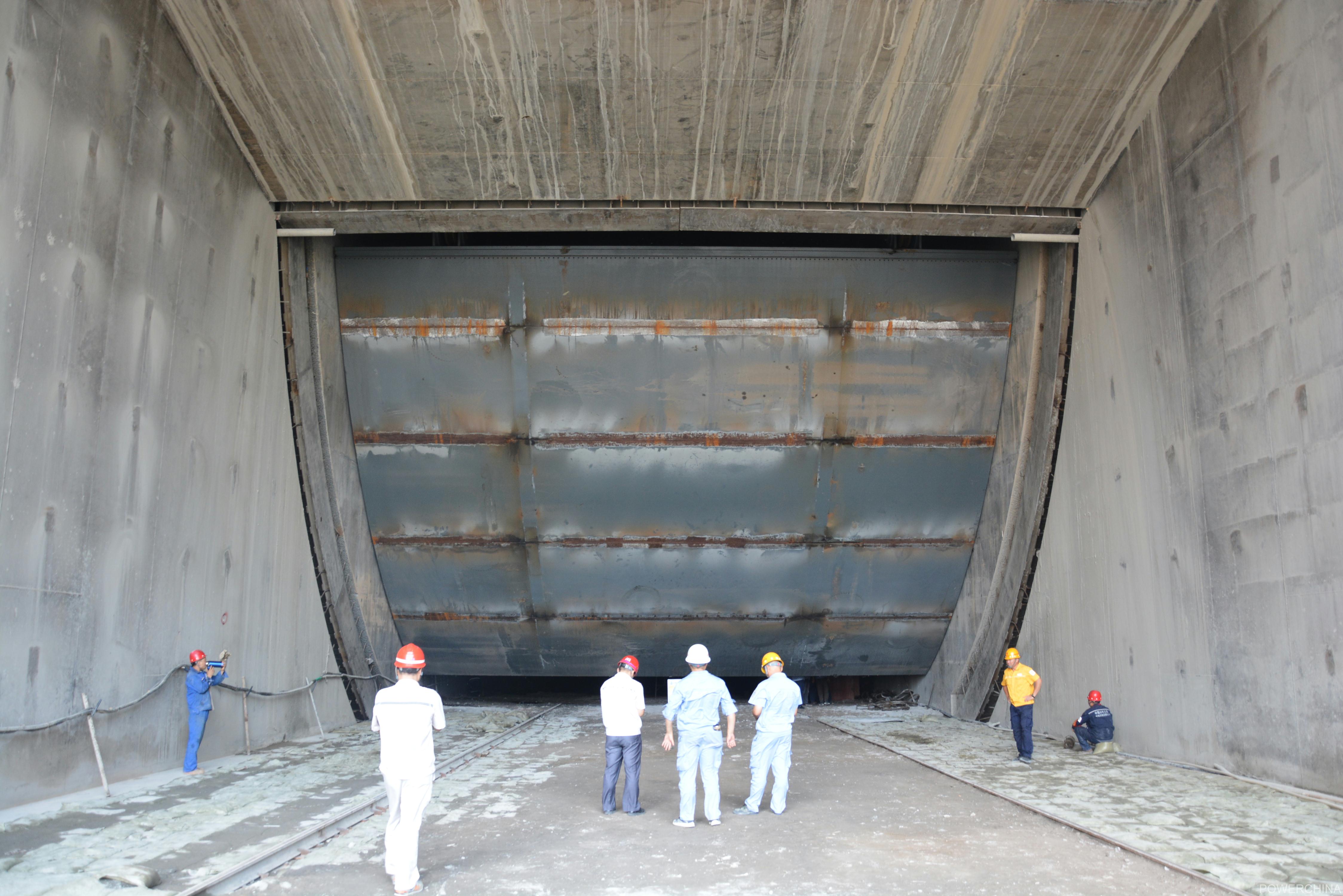 世界最大三支臂弧门首扇门叶吊装完成
