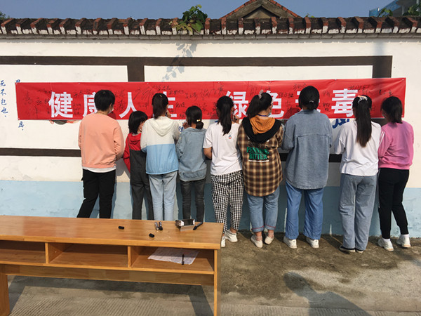 会后,新马桥中学组织全体师生进行了“健康人生,绿色无毒”签名活动。孟现全向全体师生强调了当今社会毒品的种类繁多,形式多样,越来越有迷惑性,告诫全体师生决不能因为好奇而尝试第一口。全体师生一定远离毒品,自觉抵制毒品危害。