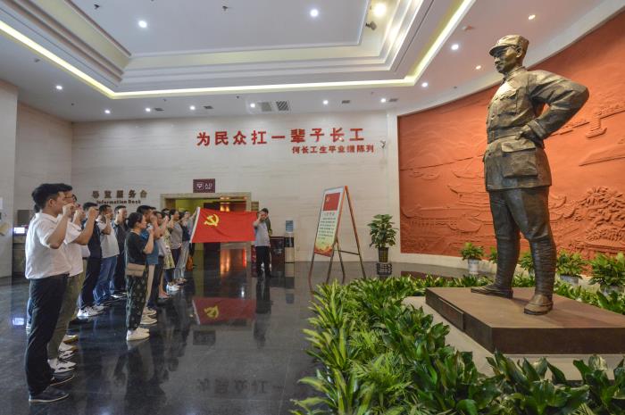 ? ? “我志愿加入中国共产党,拥护党的纲领,遵守党的章程……”纪念馆大厅,何长工同志雕像前,鲜红的党旗下,全体党员同志在机关支部书记袁雪翔同志的带领下,高举右拳,庄严宣誓,重温入党誓词。铮铮誓言,铿锵承诺,表达的是对党的忠诚,为共产主义事业奋斗终生的决心,饱含着担当作为、实干兴司的强烈愿景。