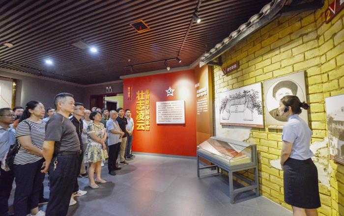 ? ? 在展厅,大家紧随讲解员,仔细聆听何长工同志生平事迹的介绍。一件件珍贵的革命文物,一幅幅感人的历史图片,一个个震撼人心的故事,让同志们更加深刻细致地了解了何长工同志在建党、建军和建国三方面的丰功伟绩和传奇人生。大家认真观看,老一辈革命家那坚定的信念、崇高品德和为民情怀,让同志们肃然起敬。