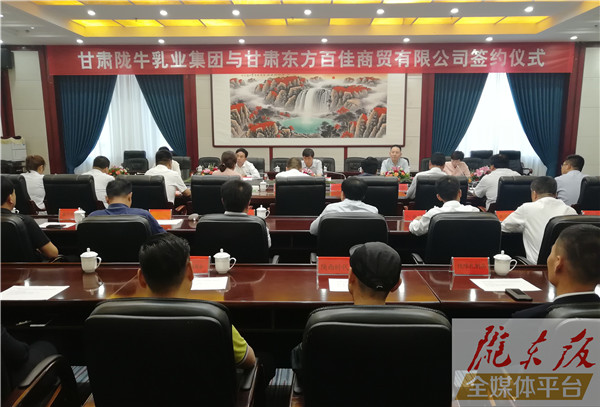 6月29日,甘肃陇牛乳业集团公司与甘肃东方百佳商贸有限公司在庆阳宾馆举行签约仪式。