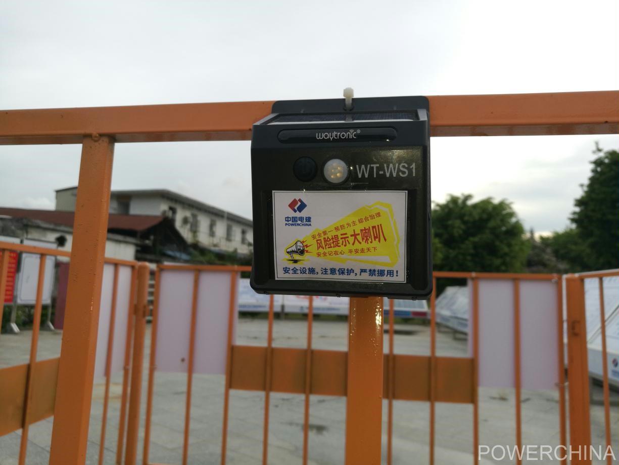 该项产品兼具实用性、适用性的优良性能,针对水环境治理项目点多面广,工点分散的特点,东莞石马河项目部独具特色的研发了两种款式的“风险提示大喇叭”:一款适用作业机械设备,它采用定点安装,由机械设备提供电源,设备启动立即播放提示音,声音清晰宏亮,即使在嘈杂的作业环境中仍然能听得清;一款适用于沟槽开挖、有限空间作业、高处作业等高风险作业点,它采用太阳能提供电源,节能环保,便于移动,便于挂设。同时,对不同的施工作业内容,开发出四种提示音,诸如“设备运行,保持距离,按规操作,注意安全。一人违章,众人遭殃,设备一响,集中思想。”提示音语言简练、意义鲜明,既反映风险管控重点,又使得作业人员印象深刻。