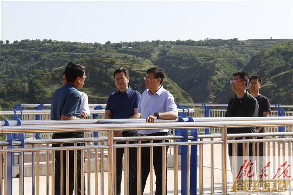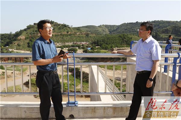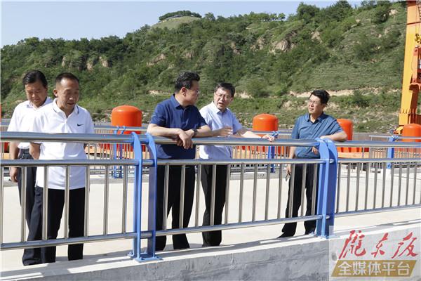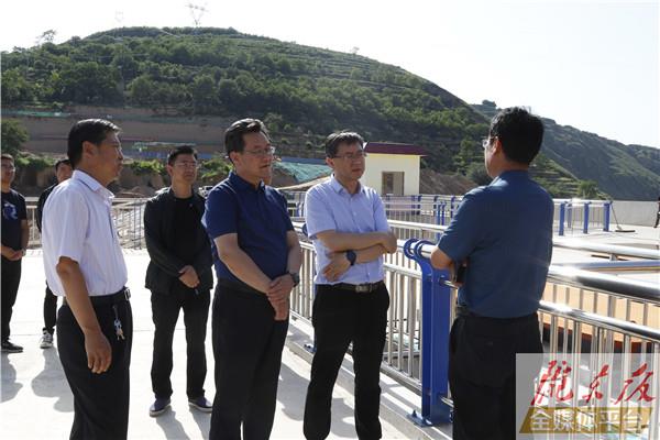 王胜一行先后前往小盘河净水厂项目部和小盘河水库建设现场,听取工程建设进展和防汛准备情况汇报,实地查看水库堤坝、泄洪口,启闭机房等关键设施,详细了解防汛预案制定、防汛责任落实、应急值守安排及防汛物资储备调运情况。