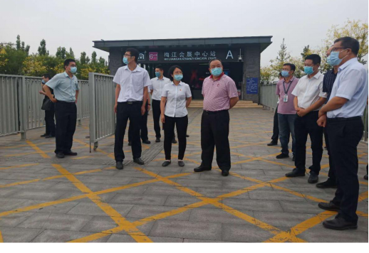 刘纯洁同志一行首先到6号线梅林路站,听取了车站防汛准备情况及售票机智能支付改造情况的汇报,现场查看了车站防汛物资,检查了防疫工作开展情况。随后到梅江会展中心站,现场询问了车站的历年防汛保障情况及日常客流情况,并来到A口外查看了站外风井情况,刘纯洁同志指出,对站外风井要做好防护,确保状态完好,同时建议考虑制作艺术围挡提升企业形象,投放广告增加收入。