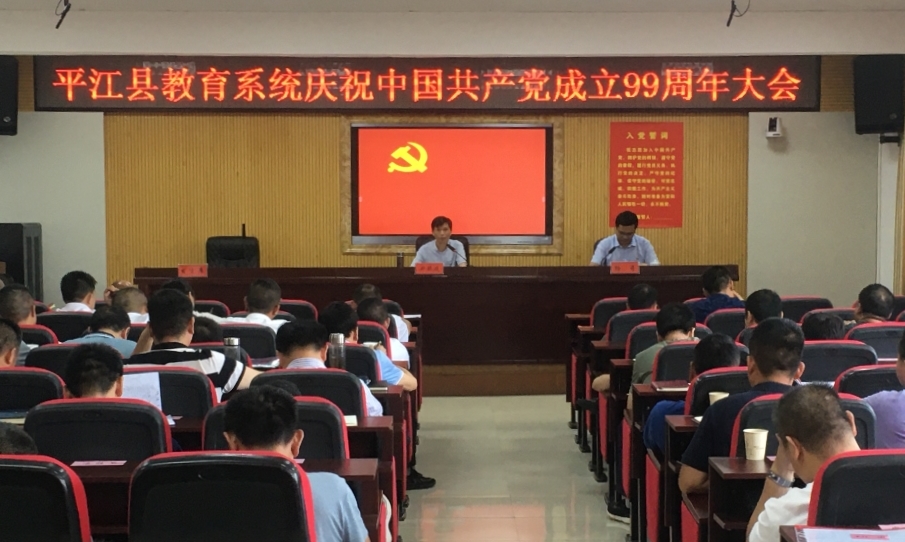 7月1日上午,全县教育系统召开庆祝建党99周年大会。县教育局党组成员,机关全体党员,各学区、县直学校党员代表和12名新党员参加会议。