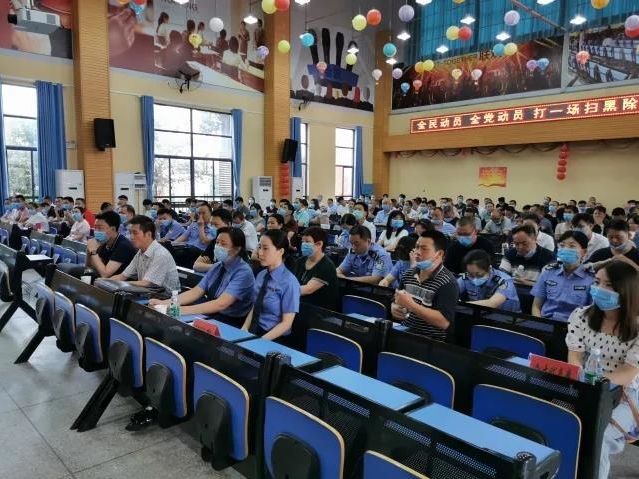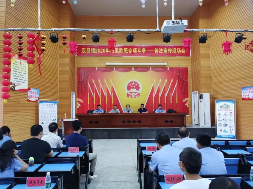 为持续推进扫黑除恶专项斗争,进一步提升全镇干部群众法律意识,以及对扫黑除恶专项斗争的认识和参与。近日,汉昌镇在思源实验学校召开扫黑除恶专项斗争普法宣传现场会,县人民检察院检察长黄利军、汉昌镇党委书记黄进军、全面依法治县委员会专职副主任方扬、司法局党组成员方献初参加会议,县人民检察院、县司法局、镇属各部门单位负责人、部分镇人大代表、政协委员、各村(社区)党员、群众代表共计200余人与会,会议由汉昌镇党委委员、政法书记李骤兴主持。