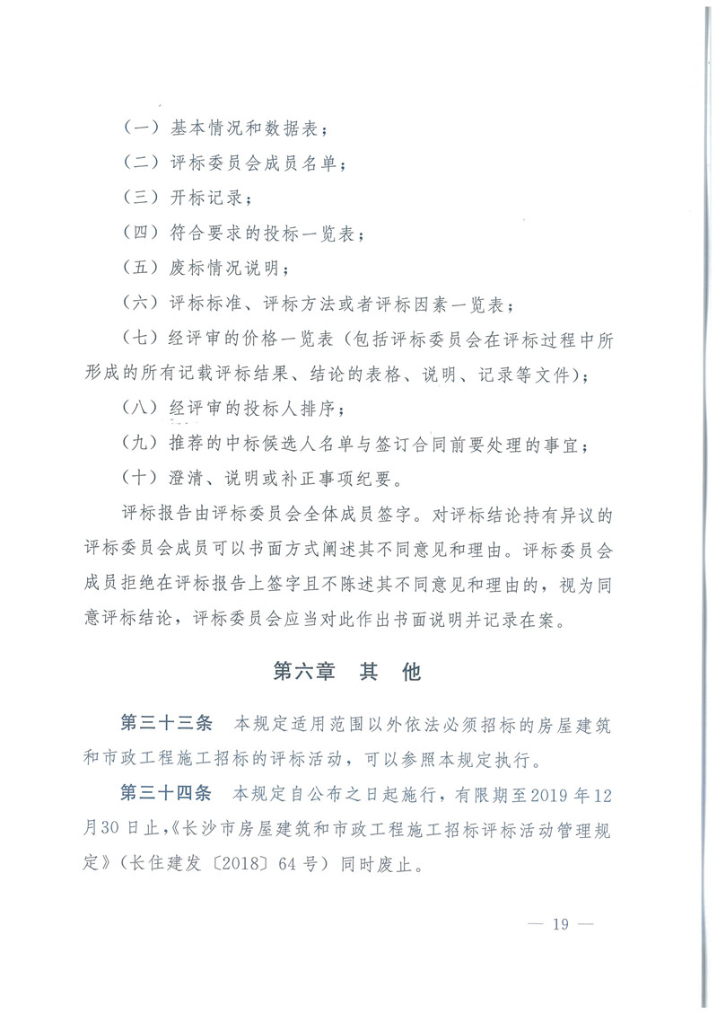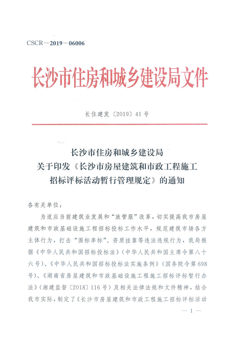 长沙市住房城乡建设局关于印发《长沙市房屋建筑和市政工程施工招标评标活动暂行管理规定》的通知