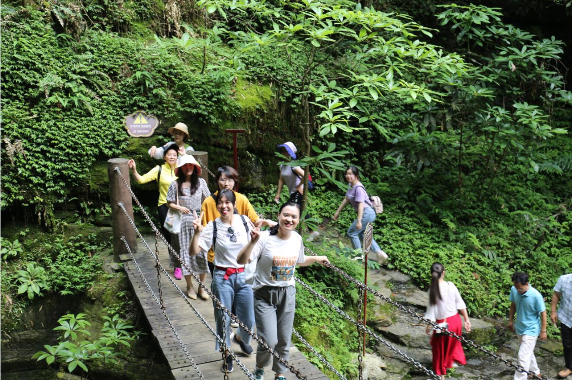 在神奇秀美的纯溪大峡谷,审计队伍沿着小路溯溪而上,与大自然亲密相拥。青山为衬,溪水作伴,虫鸣配乐,大家一路欣赏游玩,享受平江特有的好山、好水、好溪流,体验了一场清凉愉悦、激情自在的溯溪之旅。