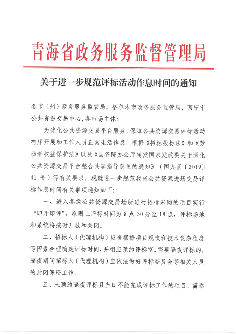 关于进一步规范评标活动作息时间的通知