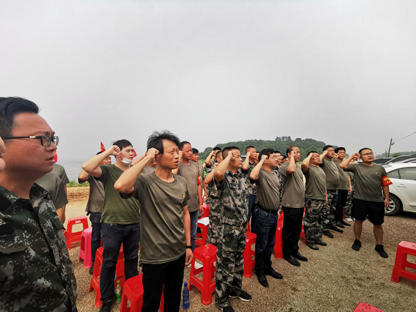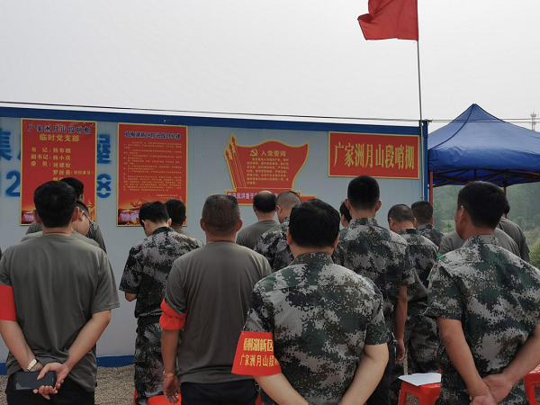 (本网讯)“我志愿加入中国共产党,拥护党的纲领,遵守党的章程,履行党员义务…………”,一阵阵铿锵有力的誓词在堤坝上久久回荡。7月10日,梧桐湖新区月山段哨棚临时党支部开展了一次特殊的支部主题党日活动,活动由临时党支部书记杨布刚同志主持开展。