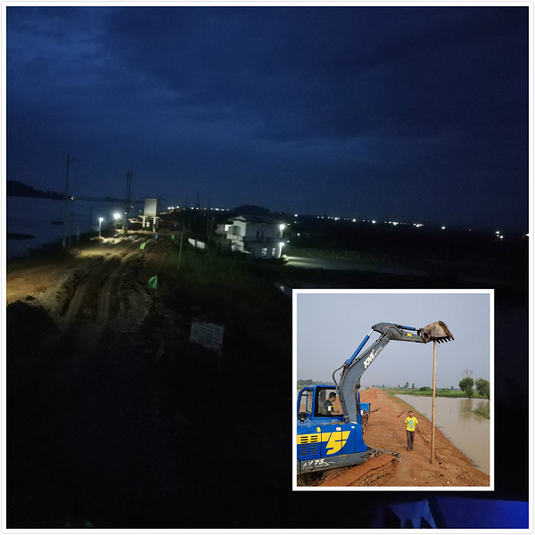 同时,刀口大圩沿线堤段经过区供电公司和太和镇供电所的共同努力,临时架线杆全部竖好,并完成通电照明工作。