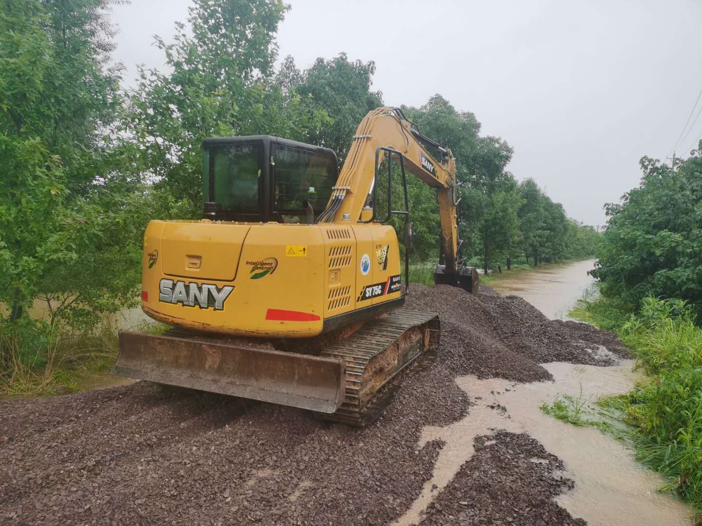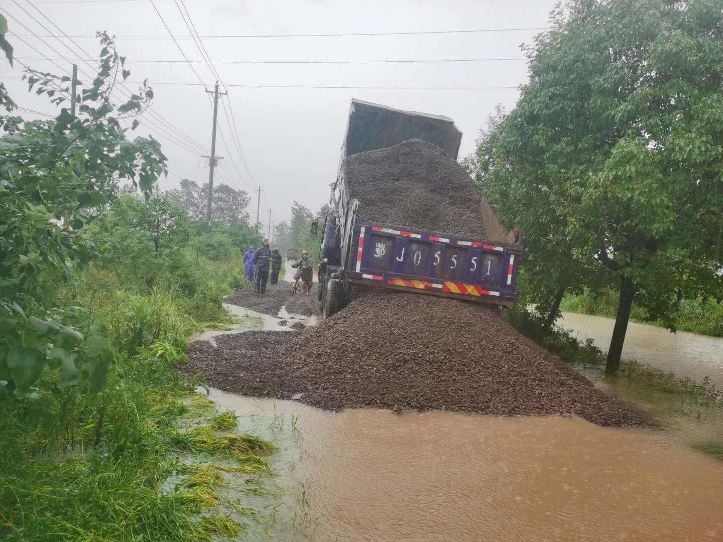 防汛携手肩并肩沼山镇联合湖北路桥冒雨抢修防汛快速应急通道