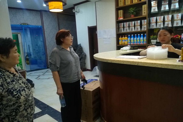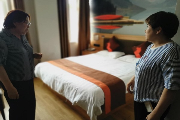 7月12日,濠城中学校长戴淑英及相关科室负责人对俊怡连锁酒店宾馆、沁园春大酒店的疫情防控、消防安全、设施安全、食品卫生安全等进行再排查,对存在问题要求立查立改。