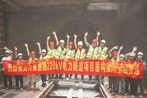 7月15日,工作人员在欢呼万家丽路220kV电力隧道项目盾构区间全线贯通。