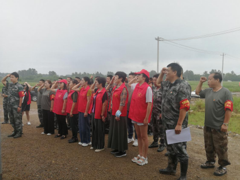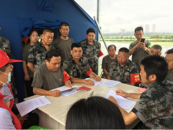 (本网讯)7月15日上午,小雨蒙蒙,区司法局党支部、区民政局党支部、鄢家堤5号哨棚临时党支部在防汛一线联合开展“党旗领航铭初心·抗洪一线铸忠诚”支部主题党日活动。
