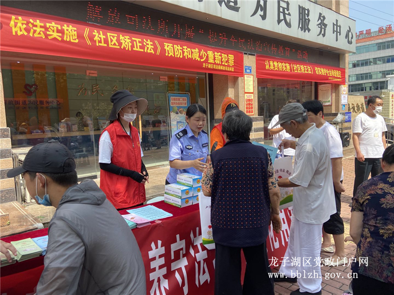 《中华人民共和国社区矫正法》于7月1日开始正式实施,为提升人民群众对新法的认识,进一步落实精准普法工作。7月16日,解放司法所在街道办事处门前开展《社区矫正法》宣传活动。