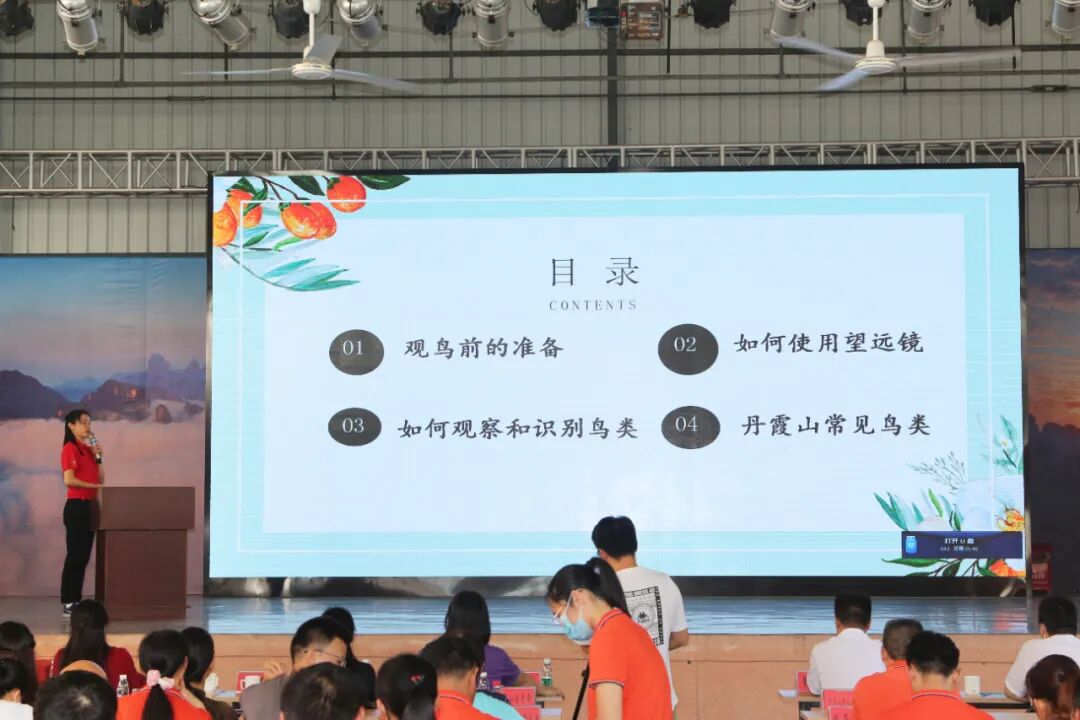 活动现场,丹霞地貌研究院相关负责人利用丰富多样的图片生动形象地向与会人员科普了丹霞地貌演化、基本类型以及丹霞地貌游赏的基本知识,赢得现场人员阵阵掌声。随后,丹霞山博物馆导赏员、丹霞山科普小镇抖音大赛活动负责人分别向参加活动的员工做了《认识丹霞山常见鸟类》《科普丹霞抖音大赛参赛现场教学》系列科普讲座,授课老师充分利用音频、影像、图书和现场教学等方式进行培训,提高员工综合素质。最后,活动还对在首届丹霞山员工野生植物辨认大赛获奖队伍及优秀部门进行表彰。