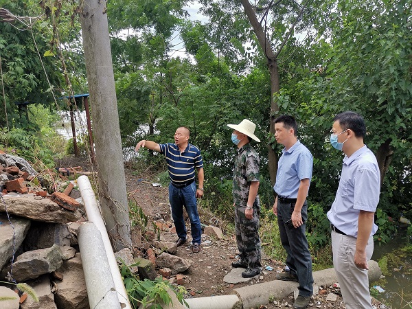 7月12日上午,区长董国平到杜山镇柯营村查看房屋受损情况,杜山镇党委副书记、镇长潘延海陪同。
