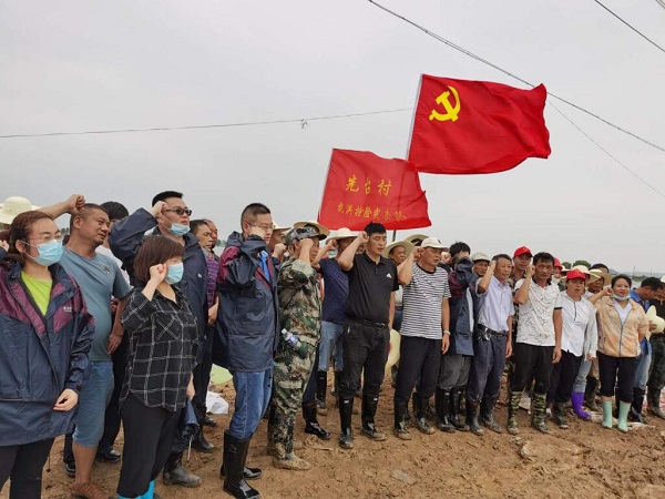 汛情就是集结号,党旗就是方向标。面对汹汹而来的汛情,杜山镇的党员干部没有丝毫退缩,毅然奋勇向前,积极投身于抢险救灾之中,用实际行动为党旗增辉。经过连续奋战,目前险情已经得到有效控制。