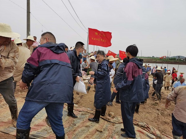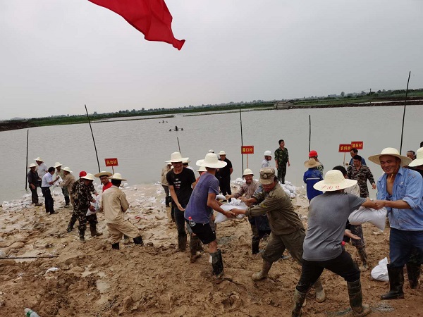汛情就是命令,防汛就是责任。区委领导现场坐镇、靠前指挥,杜山镇组织广大党员群众抢救险段,各方力量纷纷奔赴驰援,经过几天连续奋战,险情得到初步控制。为了巩固上一阶段抢险成果,确保人民群众生命财产安全,7月16日,杜山镇继续调集6辆拖车、2艘民用船只转运沙包,组织全镇党员干部300余人成立防汛突击队对黄泥洲发生沉降的堤坝堤脚处抛填砂石袋,继续加高加固,防止大堤再次出现险情,目前整个工程仍在紧张有序地进行。