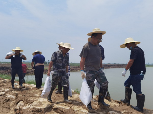 据了解,7月6日以来,三山湖水位持续高位运行。7月12日晚9时许,因持续强降雨和水位持续高位运行,三山湖黄泥洲大堤段出现长约60米的堤段沉降,湖水将沉降的堤坝冲开长约10米左右的缺口,堤坝多处出现散浸、管涌,情况万分紧急,若不及时处置,可能会导致溃堤危险。险情发生后,三山湖水系分指挥部连夜组织党员干部、村民、民兵上堤排险,区委书记刘厚文亲自到现场指挥、参与作战,长港民兵排50余人、鄂城区消防救援大队指战员20人、广山矿业25人、西山街办、教育系统、碧石渡镇突击队火速驰援,截止13日,已投入人力400余人,机械10余台(套),险情初步得到控制。