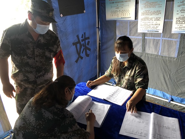 “你们哨所的记录本很规范,人员交接班记录详细翔实,防汛队员的整体形象‘兵’味十足,很有纪律性,要继续保持!”7月13日,轮到西山街道人大工委主任洪少珍带班巡堤,她来到城区堤12号哨所,对正在值勤的街道干部卢昭晖和华光村“两委”成员李忍说。