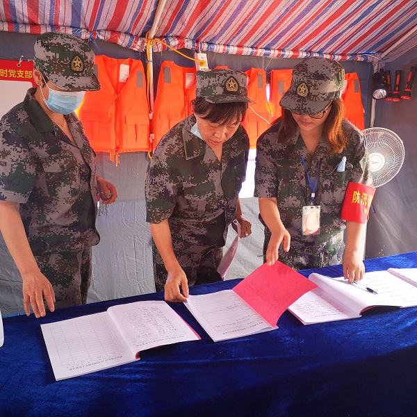 自7月6日在城区江堤搭建哨棚以来,西山街道严格按照上级防汛抢险工作指令,充分发挥基层党组织战斗堡垒和党员先锋模范作用,全街党员干部冲锋在防汛抢险第一线,街道人大工委主任洪少珍、党工委副书记段新明、柯幼云,党工委委员陈鹏倩、街道干部彭月娥、张新枝、曾春香、卢昭晖等一大批巾帼党员踊跃报名,积极上堤,共同参加城区堤西山段四个防汛哨所的值勤值守和应急抢险工作。