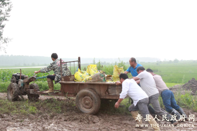 “跟我上,共产党员们!”小甸镇田铺村的党支部书记程勋明站在堤坝上,带头从拖拉机上搬下一袋土包。在场的镇村干部和六十多名抢险队员,挥动铁锹,挖土、装袋……这是7月19日下午,小甸镇田铺村邵圩圩堤上的一幕。连日的强降雨,瓦埠湖水位猛涨,位于瓦埠湖边的邵圩圩堤频频告急,圩内是1500余亩良田,关系到程大岗等6个村民组600多口人的粮食生产安全。该圩堤是小甸镇四个保障圩之一,但堤坝高度最低,汛情发生以来,该村已提前进入紧急状态。一个月前的抗旱才刚结束,好不容易,一场大雨解除了旱情,群众得水后种满所有田块,村干部们想能歇一歇,但连日的大雨瞬间又让他们从抗旱变成了防汛。 怎么办?有着多年基层工作经验的程书记没有慌乱。他迅速召开村两委会议,研究制定防汛方案,组织抢险队员,成立临时党支部。号召全村党员、青年加入抗洪抢险,险情就是命令,党旗就是方向,党旗飘扬的地方总能看见他带领抢险队员的身影。他发动群众开展生产自救,开动机器日夜排涝。
