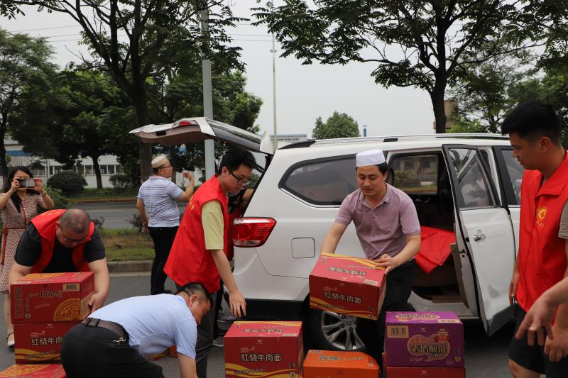 7月21日,马鞍山市伊斯兰教协会会长金崇裕、副会长郭辉波,市清真寺阿訇赵会军等人,在花山区委统战部、区应急管理局相关领导陪同下,前往花山区霍里街道丰收村、江东街道防汛值班点进行慰问,代表全市各族穆斯林群众为抗洪一线工作者送去手电筒150个、毛巾肥皂300套、方便面50箱、锅巴9箱等慰问物资。