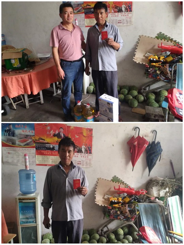 张敬才校长和闻老师带着油和奶等慰问品前往刘集镇杨湖村乔庙组慰问生活困难退伍军人。张校长表示:“拥军优属 拥政爱民”是我党、军队和全国人民的共识,是我们的优良传统,需要继续发扬光大,时值中国人民解放军建军93年之际,关爱军人是我们应尽的义务。”