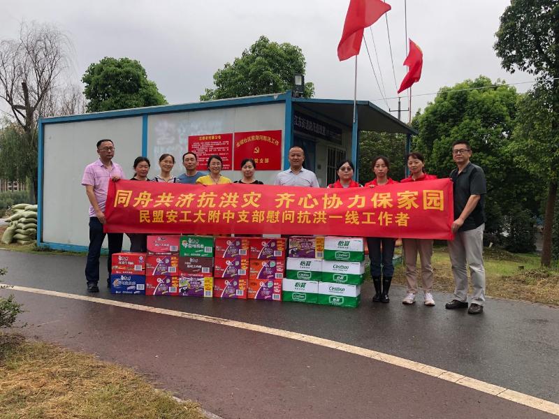 ?连日来,面对汛情,全市广大干部职工的日夜奋战。民盟花山区基层委、民盟安工大附中支部自发捐款捐物,迅速采购了瓶装水、方便面和药品等急需物资。7月24日,在民盟花山基层委主委、区政协副主席姚晓玲,民盟安工大附中支部主委、市伊斯兰协会副秘书长禹萍组织带领下,赴花山区江东街道金瑞社区慈湖河抗洪防汛值班点,将慰问物资送到抗洪一线工作者手上。