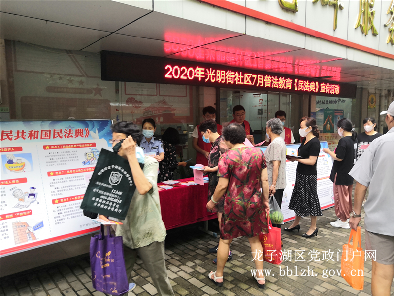 2020年7月24日治淮街道司法所和街道平安办在光明街社区集中开展《民法典》及防范电信诈骗防范非法集资宣传活动。
