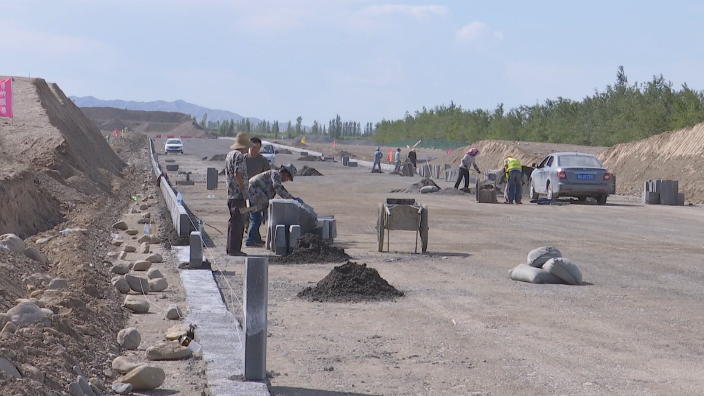 九州恒昌供应链管理有限公司技术总监刘刚:“我们这个项目6月22号开工以来,目前已经完成了厂区的工业给水,包括生活给水,修建了1023米自建公路,保障了大型施工队伍和大型机械、材料的进出,正在施工的就是10千伏的高压输电常用电线路。”