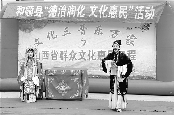 7月14日,在和顺县松烟镇大发沟村,村民们足不出村观看晋剧惠民演出。为了把文化脱贫真正落到实处,使文化惠民的阳光洒满百姓心间,和顺县推出一系列文化惠民活动,丰富村民的业余文化生活,争取在实现物质脱贫的同时实现精神脱贫。记者 曹伟 摄
